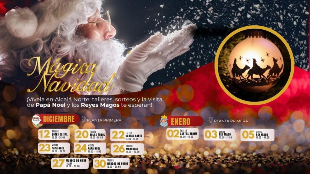 Esta Navidad, Alcalá Norte se llena de magia: talleres creativos, sorteos especiales y la visita de Papá Noel y los Reyes Magos te esperan para vivir unas fiestas inolvidables en familia.